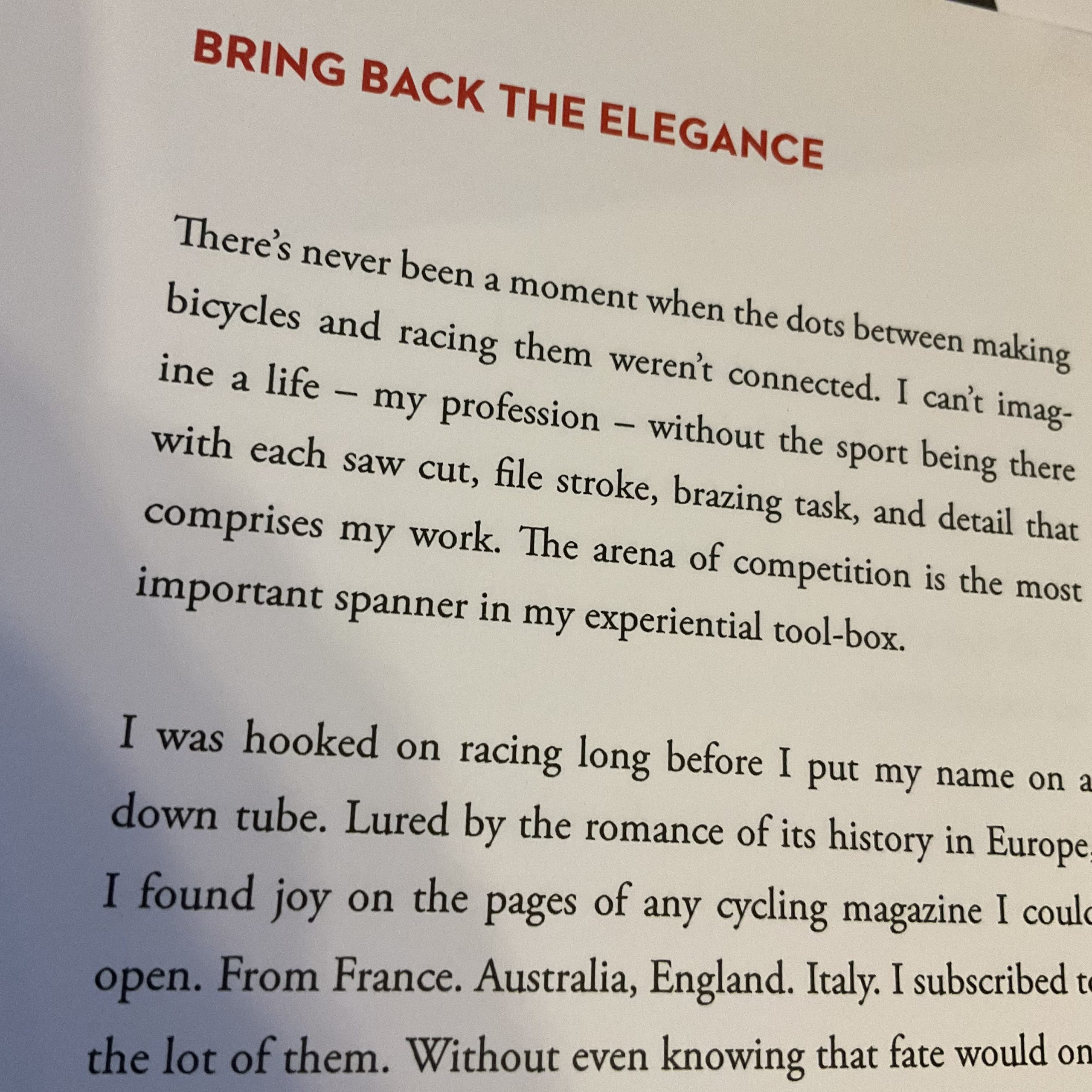 Arrange Disorder is a series. The contents reflect my fifty plus years of standing at a workbench filling orders for clients worldwide. The pages contain anecdotes, advice, musings, opinions, judgements, inspirations, sense, and nonsense. There are also many images showing what happens when a craftsman enters a collaboration with his tools and materials. This book, as well as future editions already on the drawing board, will tell my story. I’m a career framebuilder. Working alone, I make bicycles. I want people to know what I think and what I’ve seen. With more than five decades in the trade, I’d like folks to know how I got here, and why I stayed.