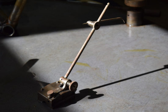 So much going on here. No materials. The dark. The light. Shadows. Tubes and lugs and drill bits and bits of A.O. cloth and a design and a client for that design and a willingness to pay for that design come soon, and then there’s me arriving – when all of it shares the same personal space, who decides if each step in the process has enough value to continue on to the next one? We all have a way. We each have a different way. Some can knock these out in hours. Some take a full week. Others have no calendar. But there’s always a standard. The standard. And we have to meet it. To raise it. To be able to repeat it and then repeat it again again. And we all need a way to measure it. And we all need a way to measure ourselves.